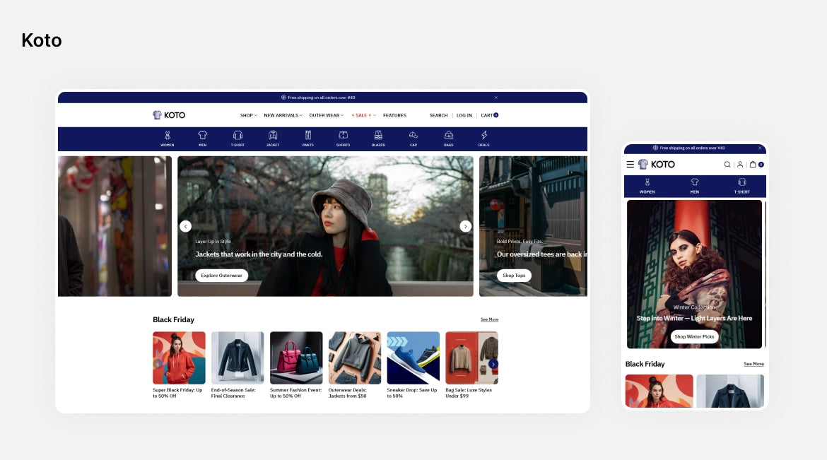 Easily browse curated collections from the megamenu featuring seasonal trends, timeless staples, and standout pieces tailored for every occasion. Navigate faster and shop smarter.